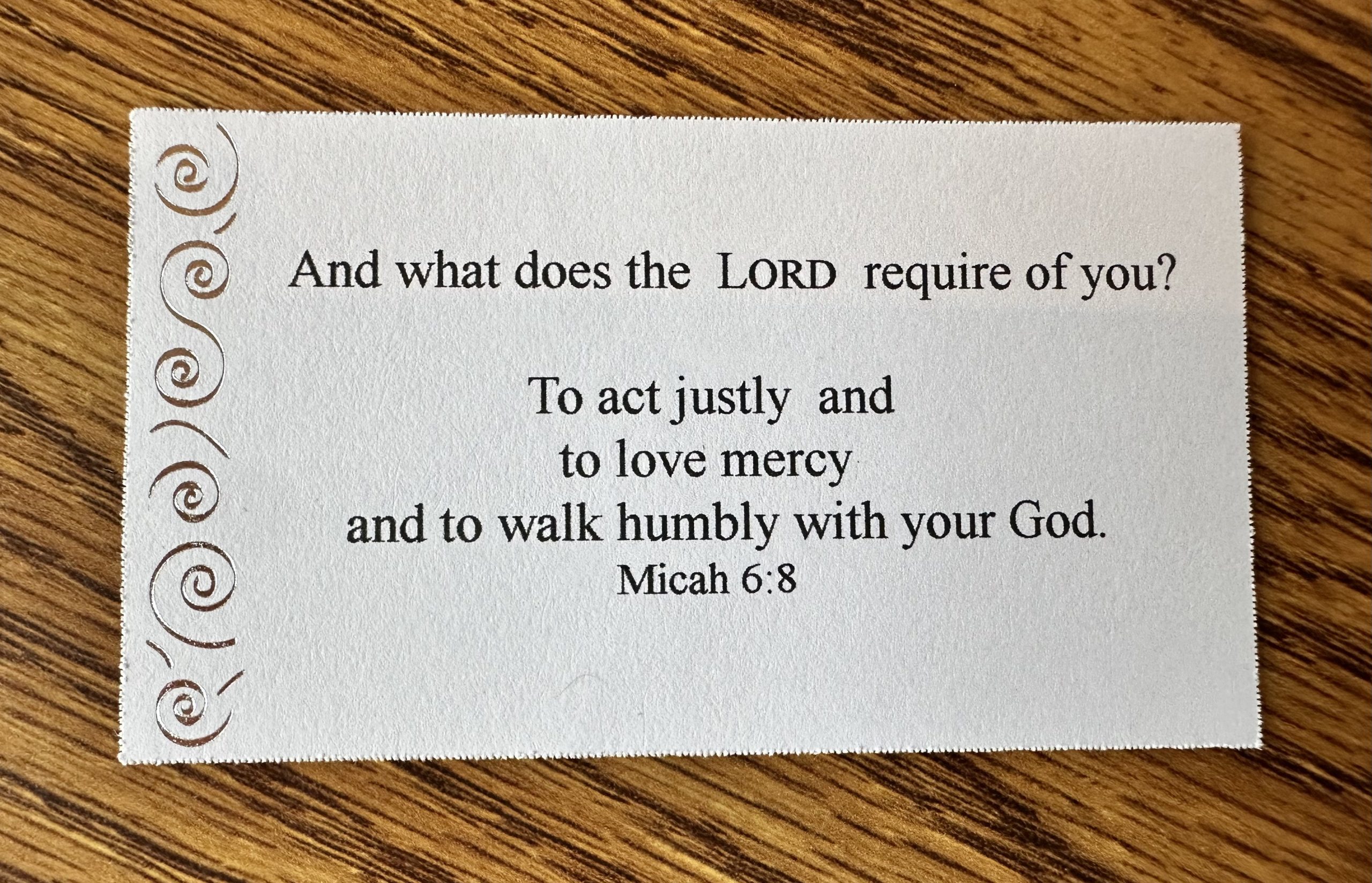 Truly inspired by the study of Micah and last Sunday’s sermon and Service 8-19-24, I have been mulling it over since and here I am sharing my thoughts because that is how I learn and integrate.